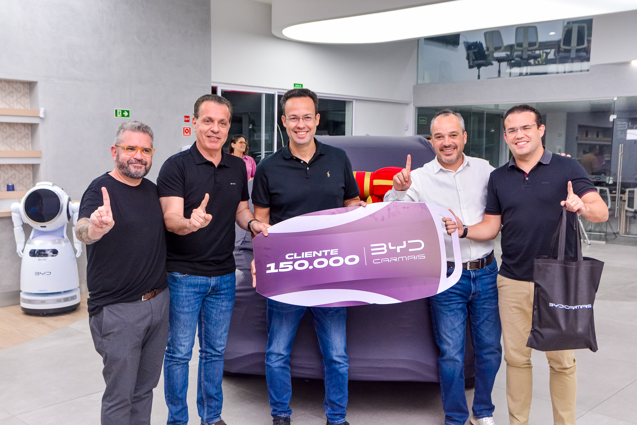 Para celebrar o marco, a companhia realizou um evento na concessionária BYD Carmais, em Fortaleza (CE), na quarta-feira (13), para entregar uma chave simbólica para o publicitário Daniel Joca. O empresário foi o primeiro cliente do grupo no Ceará. Ele comprou um BYD Tan antes mesmo da loja abrir. Hoje, Joca tem oito carros da marca e foi o felizardo a comprar o carro nº 150.000, o super híbrido BYD Song Pro. “Eu comprei sete elétricos e um híbrido. Não volto para outra marca de jeito nenhum!”, comenta aos risos o publicitário.