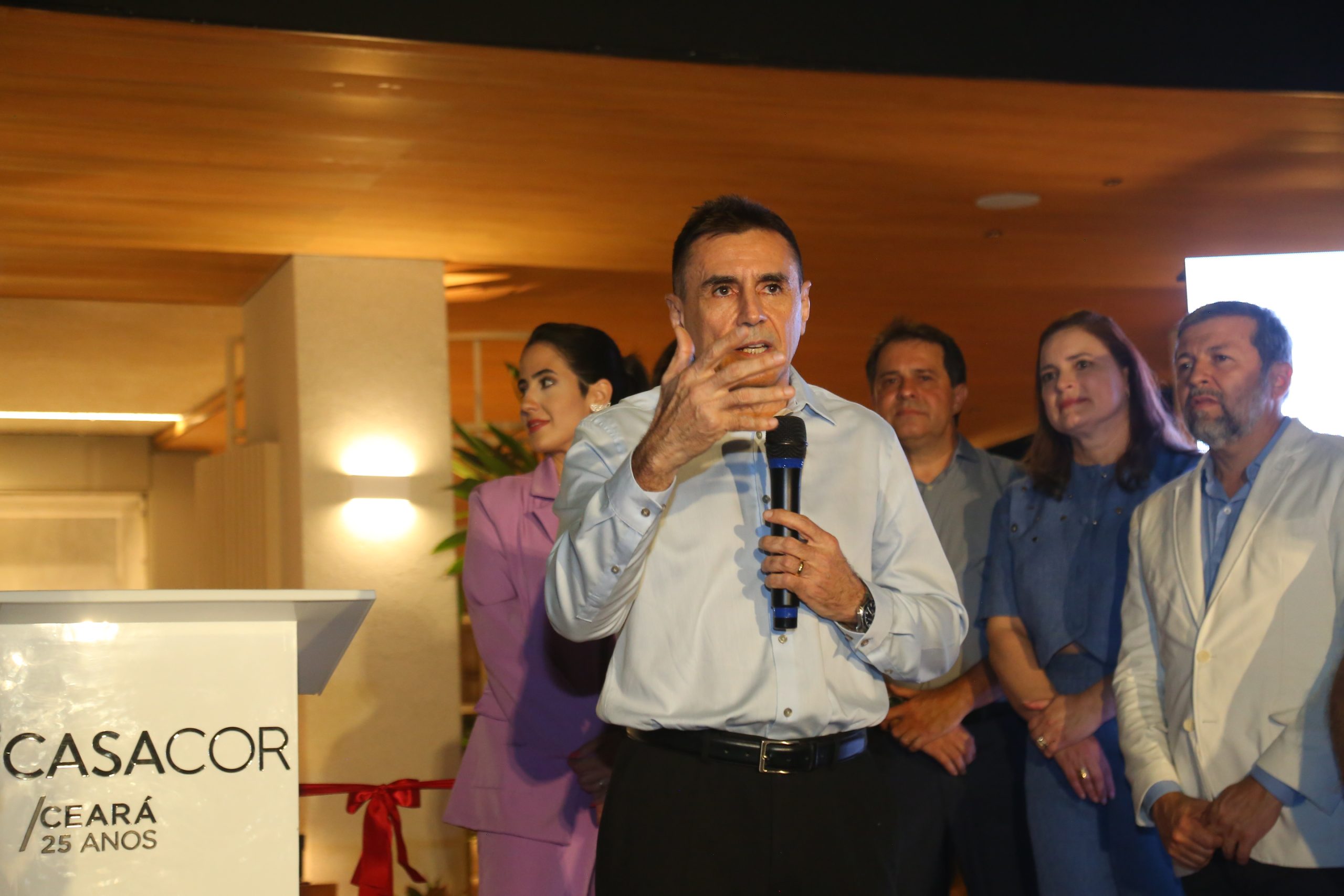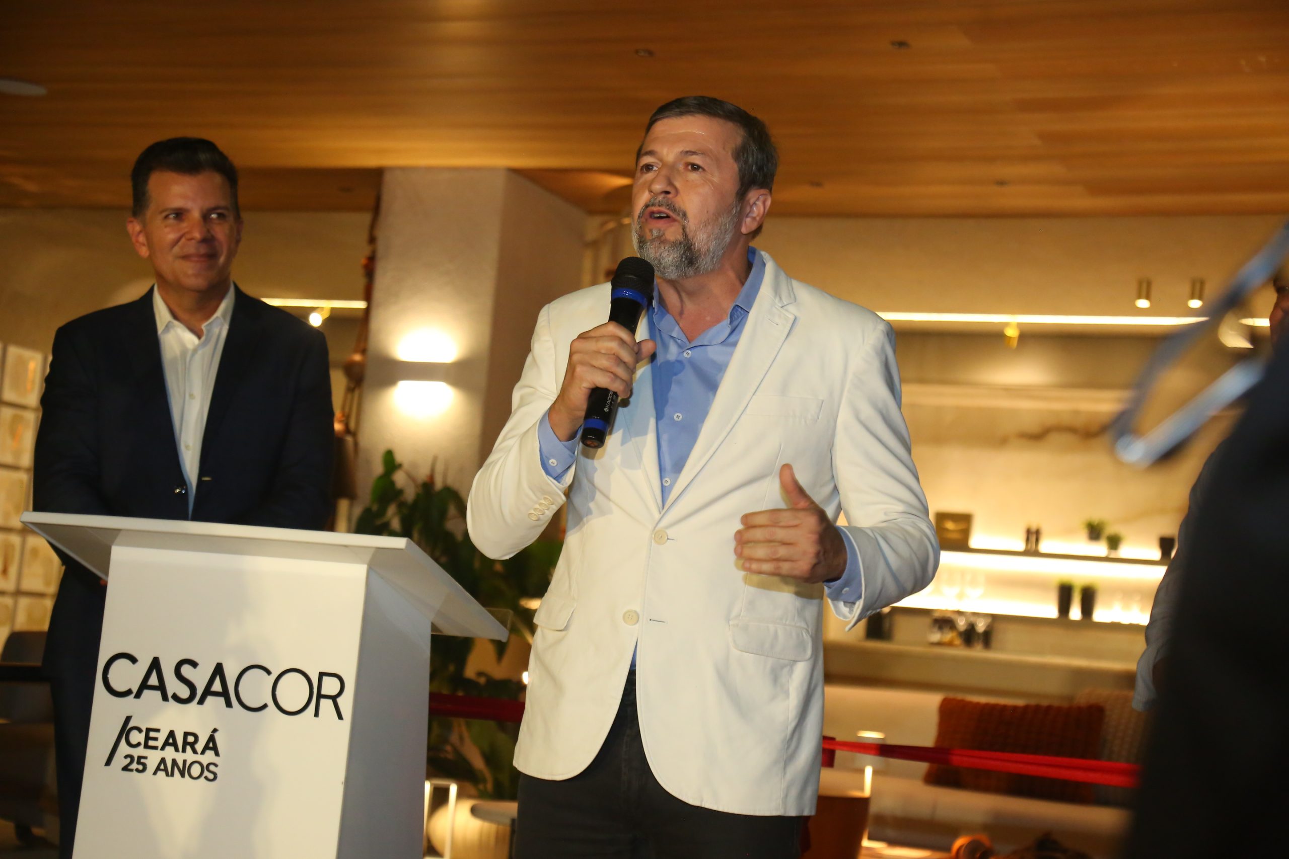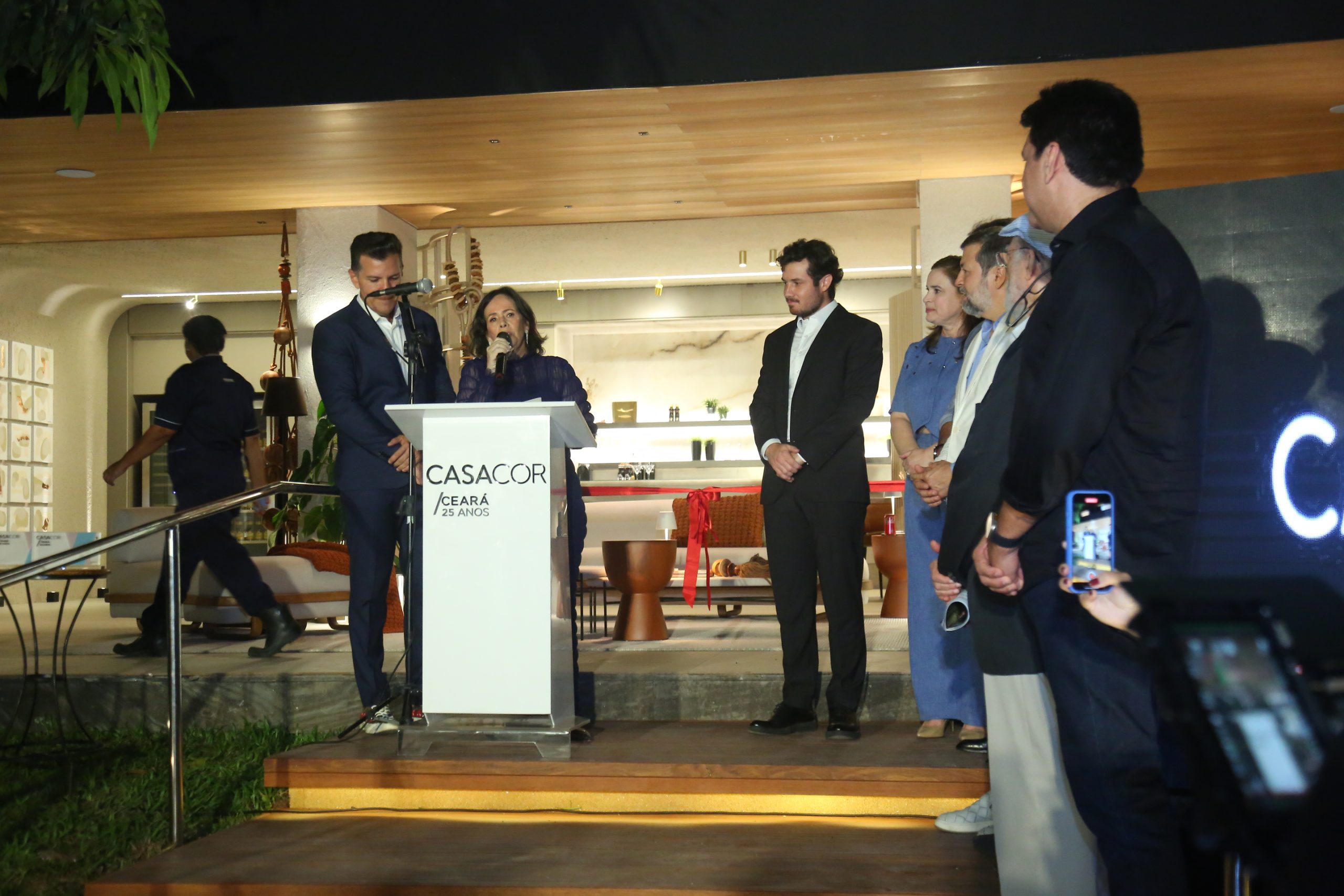 Os convidados foram recebidos pela organizadora da CASACOR Ceará, Neuma Figueiredo, e pelo diretor-geral da CASACOR, André Secchin. Entre os presentes estavam o governador em exercício do Ceará e presidente da Assembleia Legislativa, Evandro Leitão, e o vice-prefeito de Fortaleza, Élcio Batista.