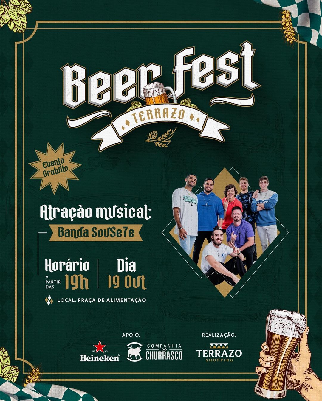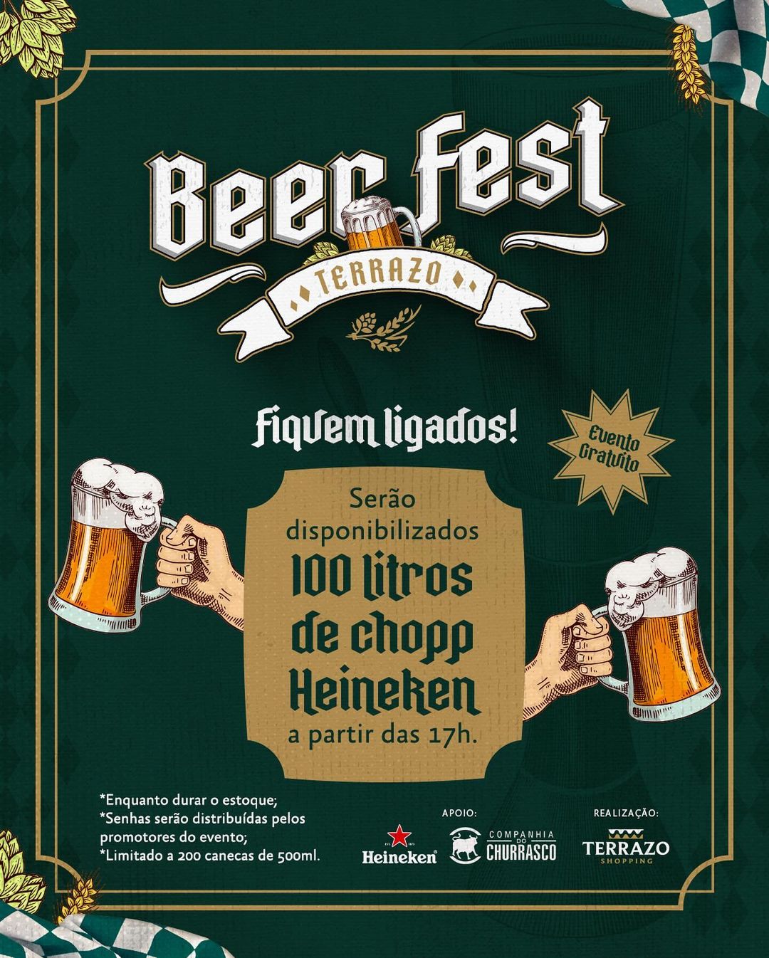 A partir de 19h, na praça de alimentação do Terrazo Shopping terá o Beer Fest Terrazo, celebrando sabores incríveis e também serão disponibilizados 100 litros de chopp de Heineken no horário de 17h.