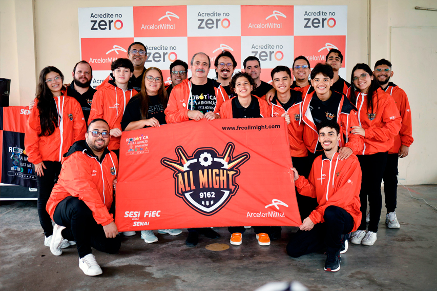 Da Diretoria da ArcelorMIttal Pecém, participaram do momento: o CEO, Erick Torres; o COO, Kleber Beraldo Andrade; o Diretor de Engenharia, Projetos e Manutenção Central, Juliano Coelho Santos; e a Gerente Geral de Sustentabilidade e Relações Institucionais, Patrícia Colaferro. O Superintendente do SESI Ceará e Diretor Regional do SENAI Ceará, Paulo André Holanda, também esteve presente. Erick Torres, além de agradecer aos colaboradores da ArcelorMittal que deram suporte à All Might na preparação para o torneio, dedicou suas palavras aos estudantes. “A gente está muito orgulhoso de ter essa parceria tão bacana com o SESI, concentrando as oportunidades na educação e no desenvolvimento. Vocês [alunos] estão tendo uma oportunidade que eu não tive, quando eu tinha a idade de vocês. E é importante viverem isso, aproveitarem e desenvolverem o que vocês têm de melhor, além de saber que o outro também é especial como a gente. Trabalhando de forma conjunta, temos a capacidade de desenvolver melhor as pessoas e crescer junto. Vocês estão agradecendo à ArcelorMittal, mas é a ArcelorMittal que agradece pela oportunidade de poder fazer parte disso.”, disse ele.