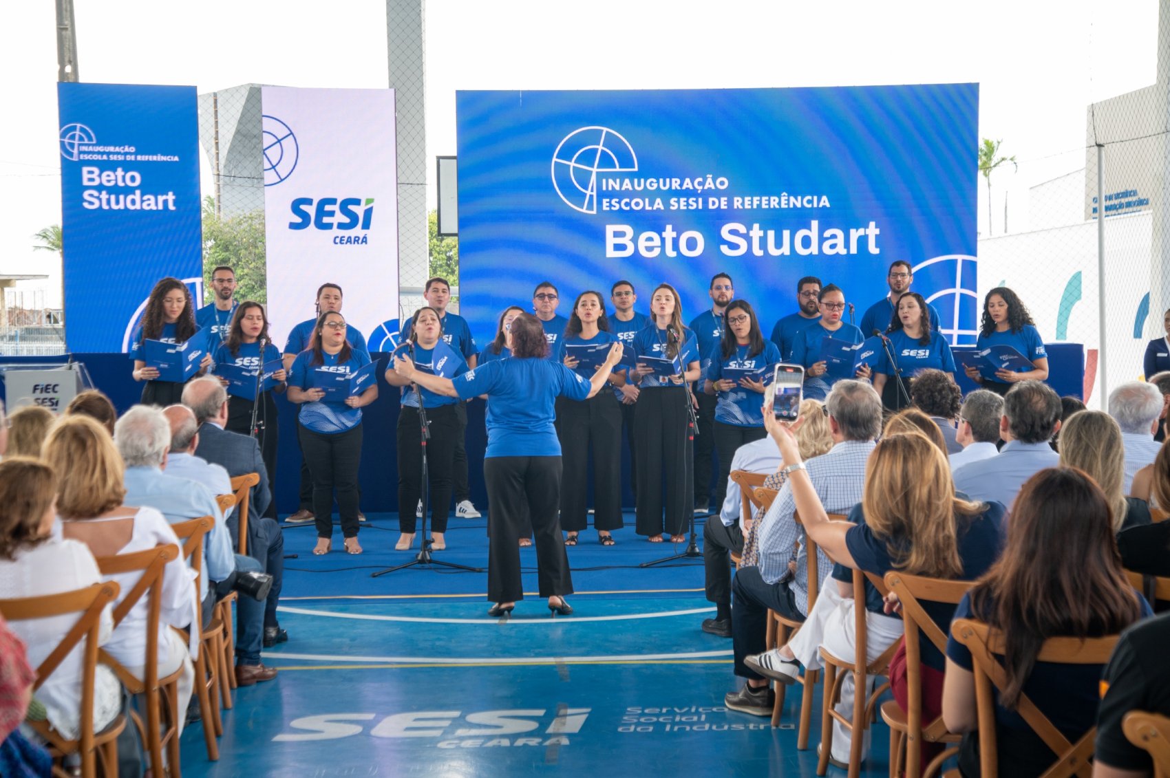 O evento de entrega da unidade também incluiu uma programação especial entre colaboradores e estudantes, com destaque para a apresentação do Coral da FIEC, performando canções da música popular brasileira, visita às salas de aula e laboratórios, e o depoimento de Karolayne Freire, aluna do 3º ano do Ensino Médio na escola. Karolayne falou sobre o impacto que a instituição tem em sua formação escolar e humana, homenageando o corpo docente.