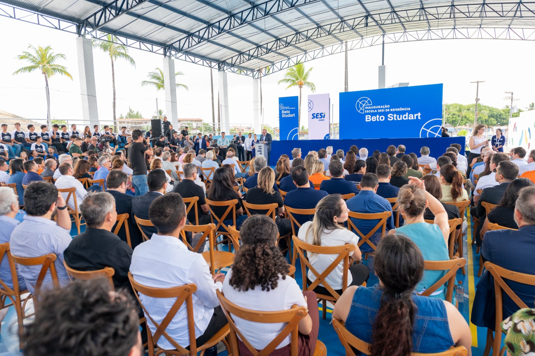 A Federação das Indústrias do Estado do Ceará (FIEC) inaugurou, nesta terça-feira (24), a Escola SESI SENAI de Referência Beto Studart, novo equipamento educacional da rede SESI SENAI Ceará, voltado à oferta de formação desde a Educação Infantil até o Ensino Médio. A entrega oficial da unidade foi marcada por cerimônia no SESI da Barra do Ceará, com a participação do Presidente da FIEC, Ricardo Cavalcante; do patrono da escola e Ex-presidente da Federação, Beto Studart; e do Presidente do Conselho Nacional do SESI, Fausto Augusto Junior.
