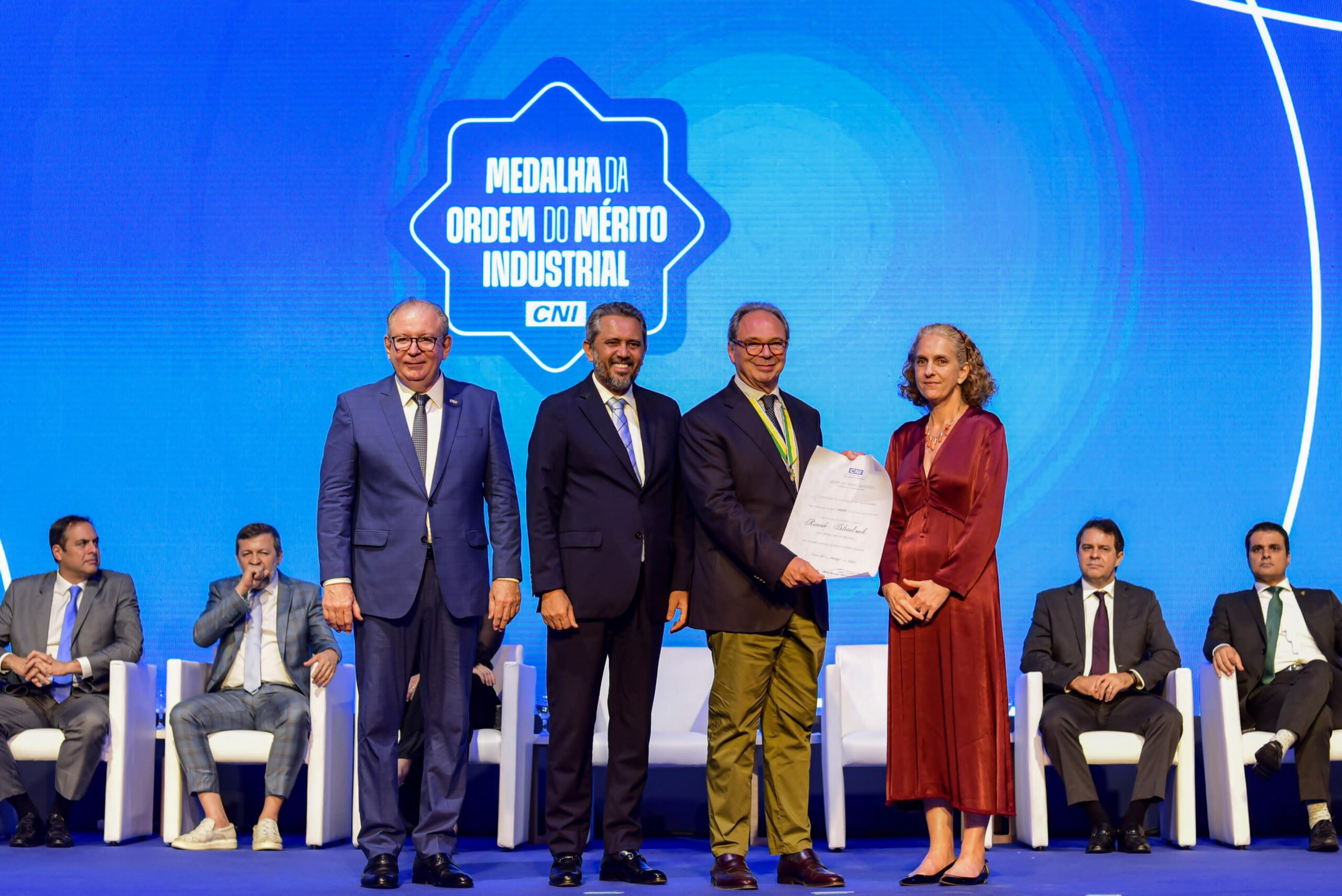A noite de comemorações também contou com a entrega da Ordem do Mérito Industrial da CNI a Ricardo Steinbruch, presidente do Conselho de Administração da Vicunha Têxtil e atual presidente da Associação Brasileira da Indústria Têxtil (ABIT).