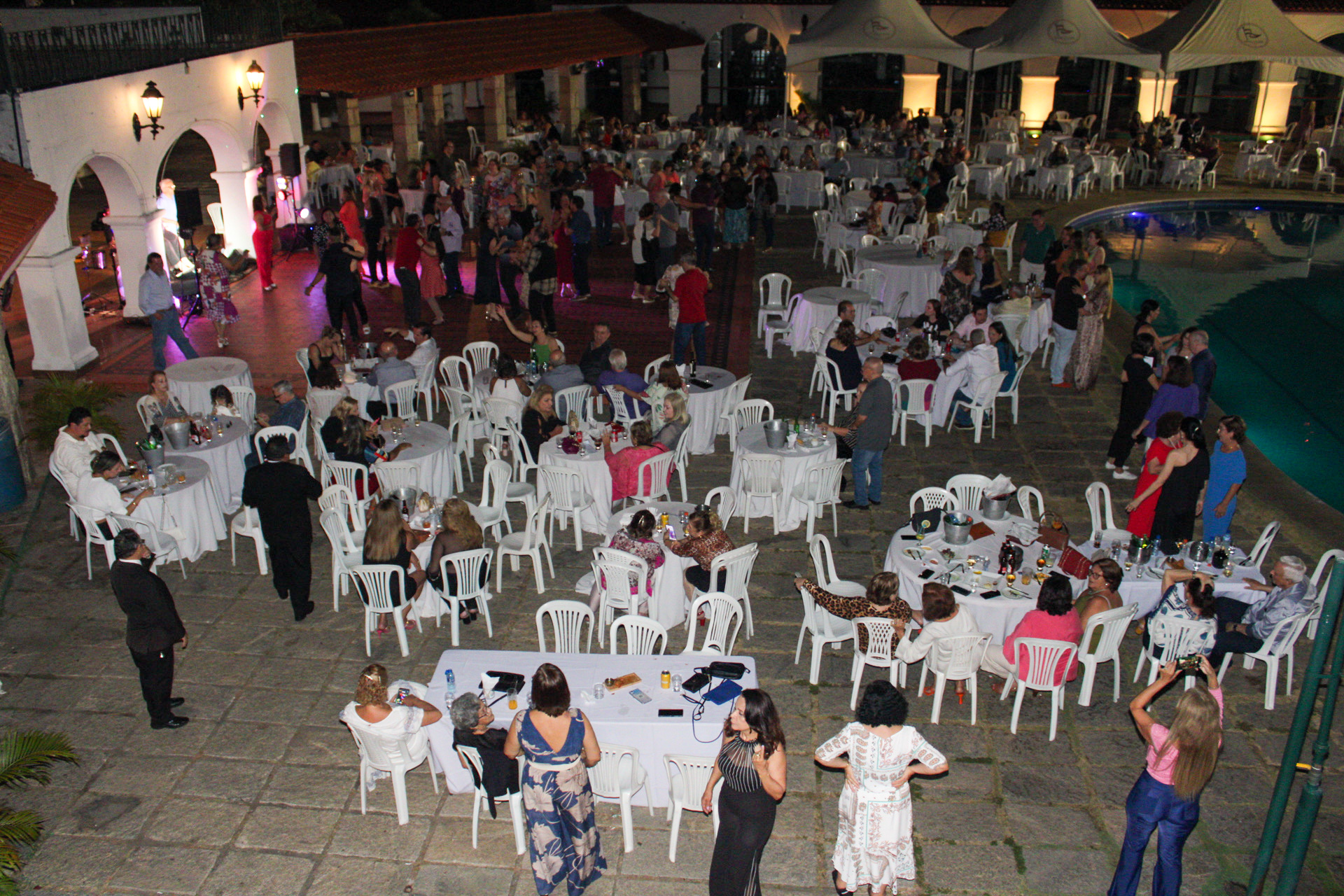 O evento aconteceu na área aberta do clube e contou com um público de todas as idades, que dançaram ao som de músicas dos anos 60, 70 e 80, além de grandes clássicos do cinema.