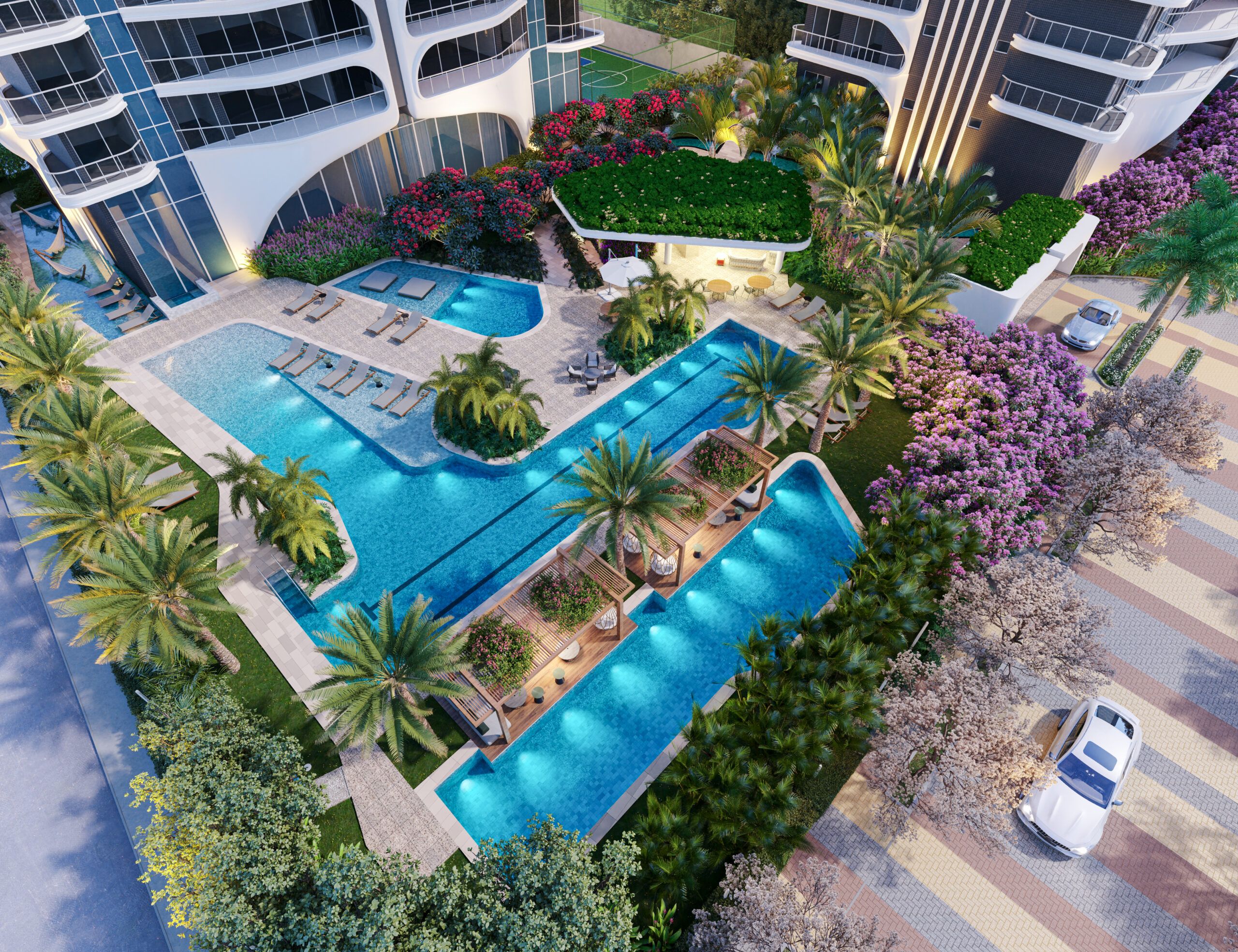 Com duas torres, Safira e Diamante, e unidades de 235,33 m² a 277,07 m², o Platinum se destaca por plantas com quatro suítes, varanda gourmet integrada, além de uma área comum com mais de 30 itens de lazer, incluindo um parque aquático de 1.800 m² e um rooftop com espaço para yoga e pilates, e lounge pub com vista panorâmica. O projeto arquitetônico, assinado por Daniel Arruda, valoriza linhas aerodinâmicas, pé-direito generoso e ampla entrada de luz natural. “Buscamos criar um empreendimento elegante, funcional e em sintonia com o Guararapes, priorizando harmonia, conforto e conexão com o verde”, explica Daniel Arruda. Ao lado Platinum Condominium, a construtora também apresenta o Platinum Mall, que contará com operações de grandes marcas, como Greenlife Family, Empório da Tapioca, Farmácias Santa Branca, Supermercado Guará e muito mais.