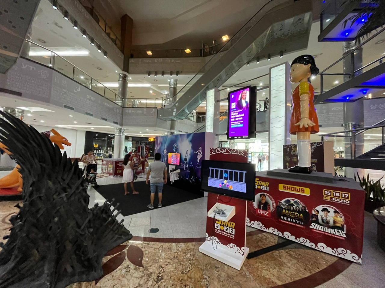No local, estão expostas réplicas dos pokemóns Blastoise e Charizard para que o público possa interagir e um espaço instagramável com a boneca da série Round 6 e o trono de Game of Thrones. Sessões gratuitas de videogame e Just Dance também fazem parte das atrações.