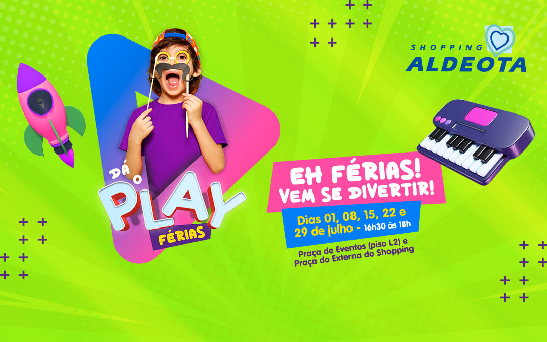 O Shopping Aldeota está promovendo no dia 15, no piso L2, e nos dias 22 e 29 de julho, na praça externa do shopping (em frente à Praça Portugal) a partir das 16:30, o Dá o Play de Férias.