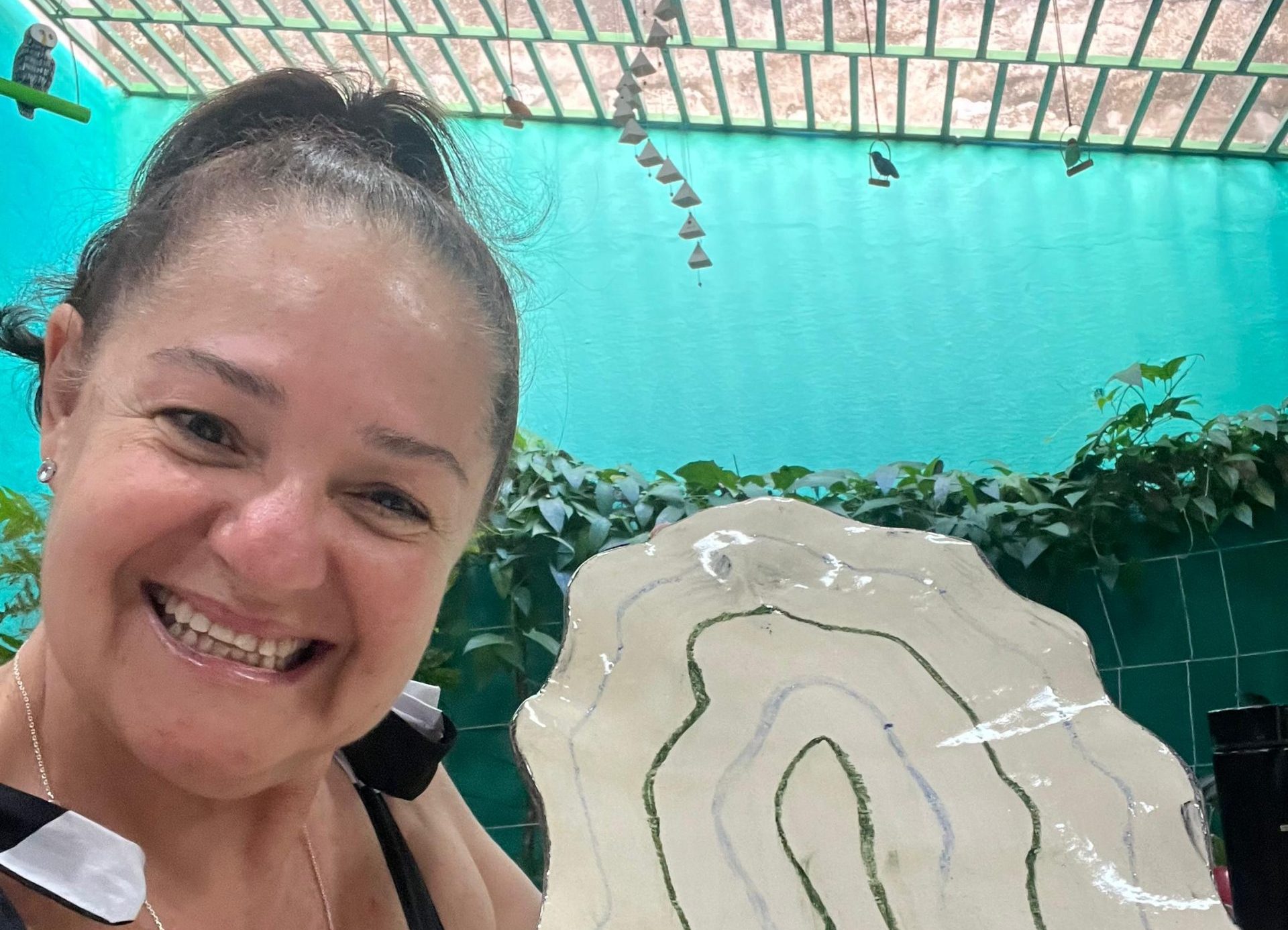 Estar cercada pelo verde residindo em uma metrópole como Fortaleza, é uma busca de Verônica Barbazán ao longo de sua trajetória. Da valorização da vegetação, nasceu a ideia de desenvolver peças em cerâmica, utilizando a argila e a esmaltação, retratando assim folhas de plantas de diversas espécies. A técnica de Barbazán foi desenvolvida com instruções de Annelise Grieser, da artista plástica, ceramista e professora.