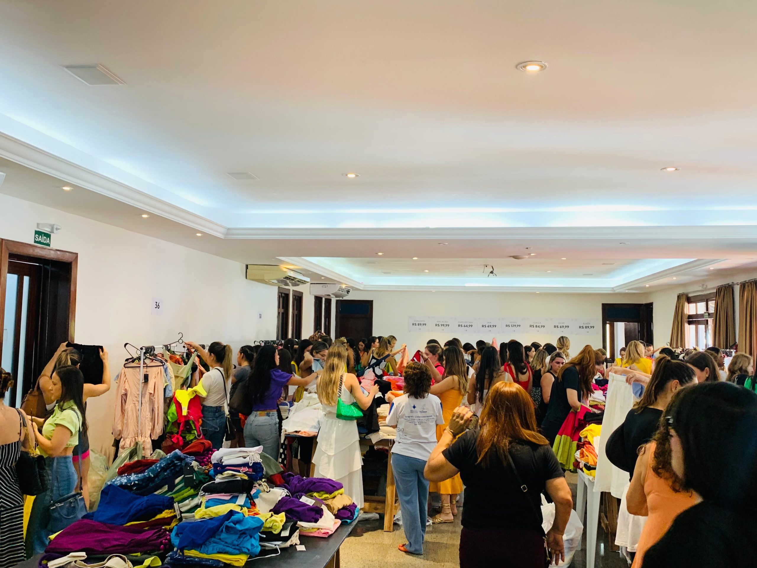 Durante os dias de bazar, os interessados encontrarão uma ampla variedade de peças de vestuário, que incluem vestidos, blazers, calças, conjuntos e demais itens. Todas as peças são referentes a coleções da marca, reconhecidas por sua qualidade e elegância. Os preços dos itens variam entre R$89,90 e R$189,90, garantindo opções acessíveis aos visitantes.