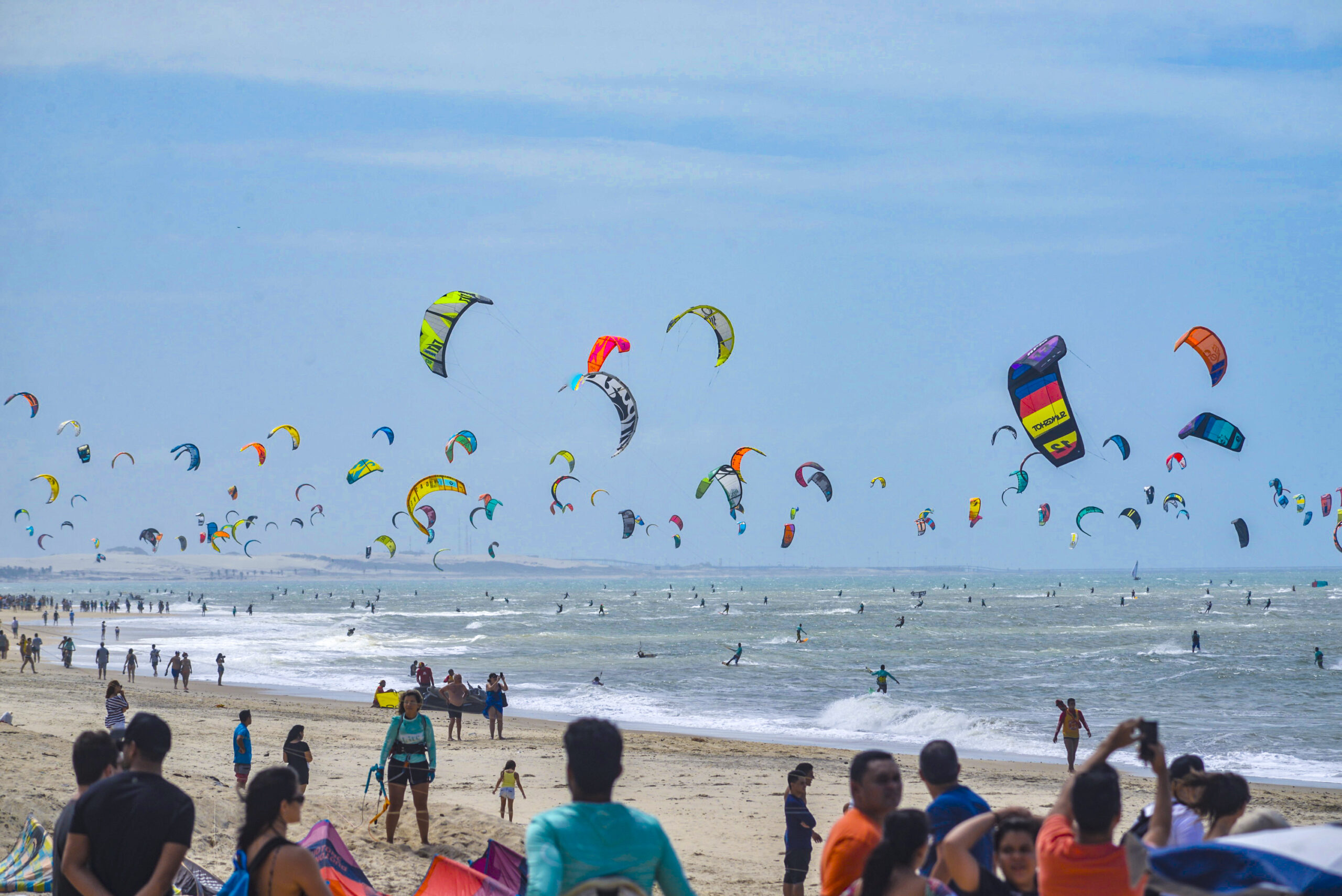 Além de uma maratona do conhecimento que incluiu painéis, exposições, mostra de startups, shows, gastronomia e programação cultural, os bons ventos trouxeram milhares de kitesurfistas às águas do Cumbuco durante o Winds for Future 2022 neste domingo (25).